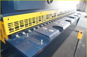 2.Backguage : 0.55KW 전동기로 구동되는 툴링 세트로 설정, 위로 툴링 세트로 스윙. 후방 스토퍼에는 전기 조절 및 수동 조절 장치가 장착되어 있으며 스토퍼 크기 및 전단 시간 표시를위한 디지털 디스플레이 장치가 제공됩니다.